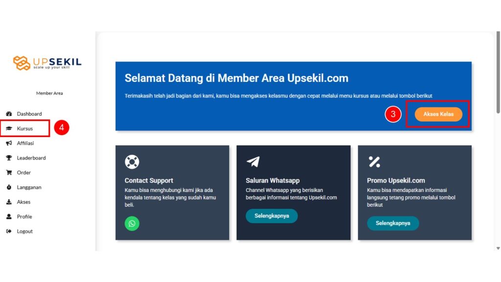 Jika berhasil login, Anda akan diarahkan ke Member Area.